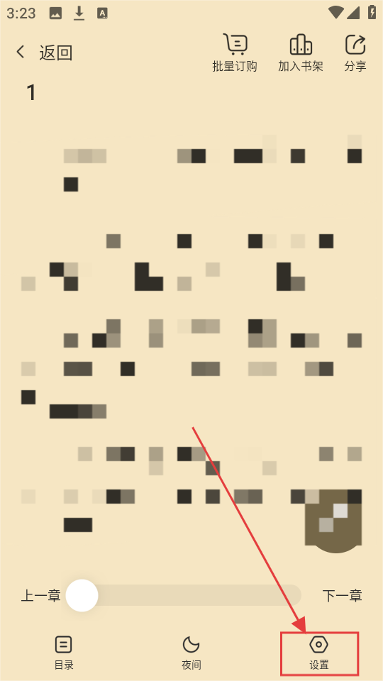 2、在阅读页,点击底部【设置】,展开设置选项,能看到字号、背景等调节选项哦。