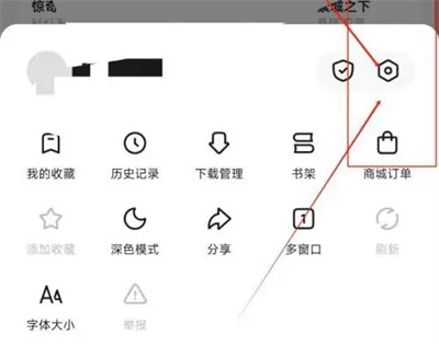 2.等页面底部弹出一个窗口,在里面点击右上角的“设置”。