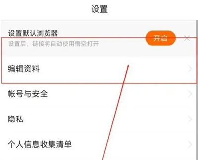 3、接下来,跳转进入到设置页面里,在其中找到“编辑资料”这一项后在上面点击进入。