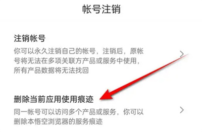 5.在账号注销页面里点击“删除当前应用使用痕迹”这一项。