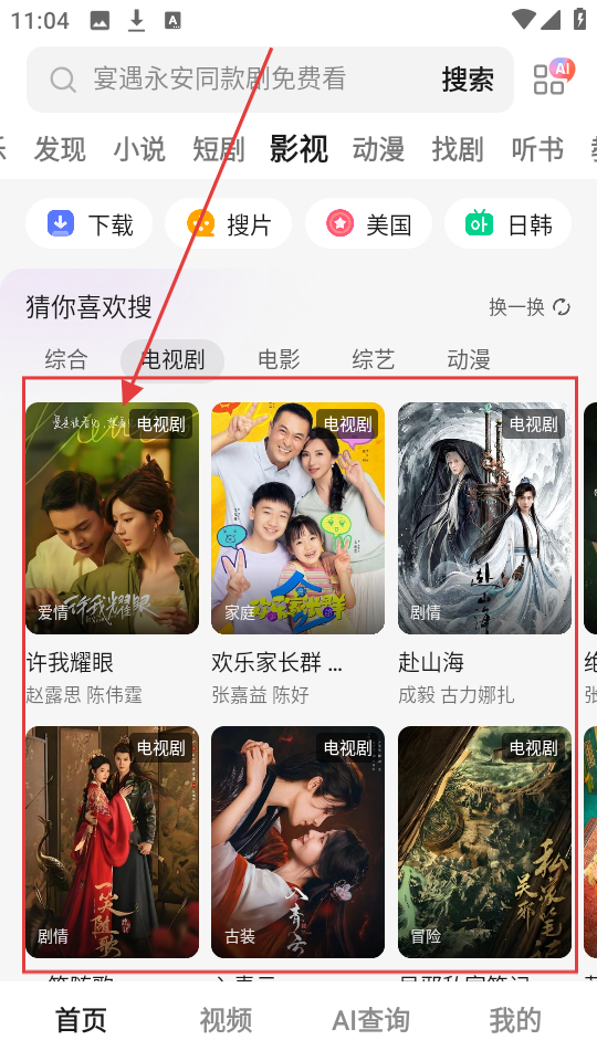 2、进入影视专区后,找到【电视剧】分类,点击它就能看到各种电视剧,方便挑选想看的。