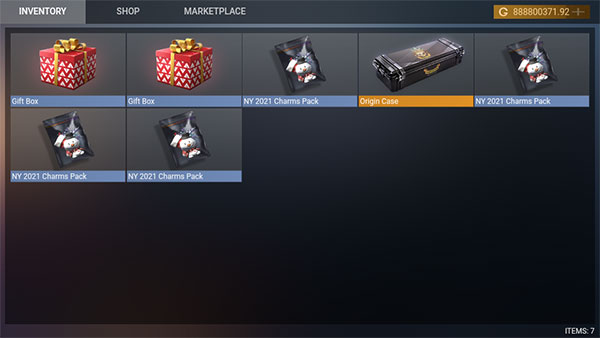 该游戏有虚拟库存功能,由主界面侧滑菜单和开箱