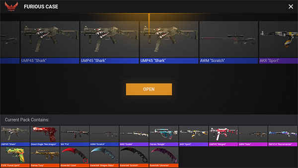 1、开箱模拟:玩家可以尽情打开宝箱,没有任何限制,只要你有足够的金币购买宝箱即可,当然开出来皮肤不是真的。