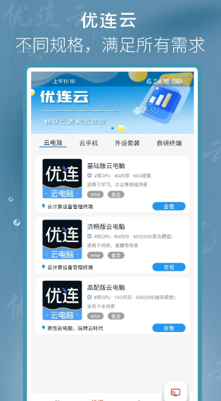 1、优连云电脑APP支持个性化使用体验,用户可以根据自己的需求和喜好设置界面,调整参数。