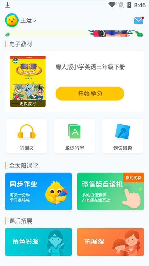 小飞机英语app是一款功能全面、内容丰富、操作简便的英语学习应用,非常适合中小学生使用。以下是对该应用的详细点评:小飞机英语app以最新人教版教材为基础,确保了学习的内容与学校教学同步。同时,应用还提供了丰富的学习资源,包括单词、短语、句型、课文等,能够满足学生们多样化的学习需求。