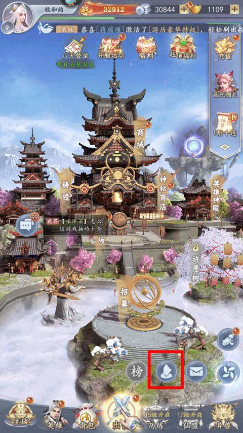 1、进入太吾纪元官方正版,切换到“主城”,点击右下角的悬浮按钮,如下图,点击人物;