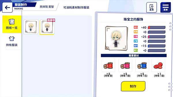 最后的最后,每个工作所需要的服装属性不同,发现自己打工老达不到prefect,可以针对这些属性去做衣服。衣服所加成属性越高,要的材料越多。