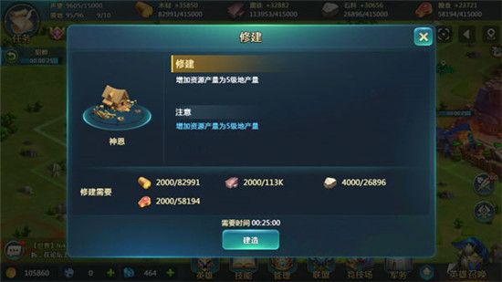 (4)在游戏前期,获取资源十分有效的一个方式,便是通过学院升级科技-神之恩惠,这项科技可以让3级地拥有5级地的资源产量。选择自身匮乏的资源修建神恩科技,可以极大的促进前期的发展速度