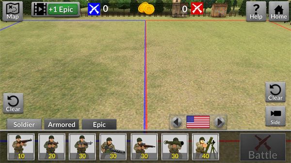 4、不同国家会有不同的武器,合理搭配士兵,在战场上摆出完美的阵型,与敌人展开战。