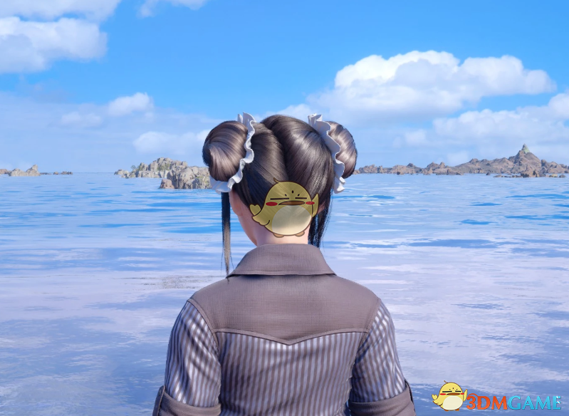 1、将蒂法的魅力鯨鱼服饰的发型设计为可爱的包子发髻。