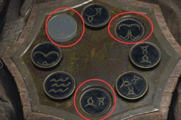 3、教堂中有一个锁,完整图案如下,在右侧的柜子当中还有一个道具。