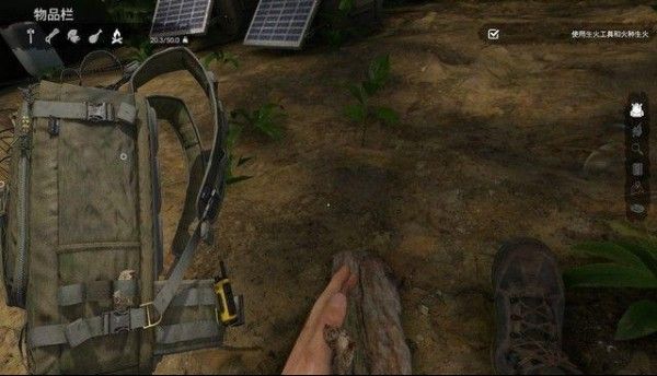 你需要采集小木棍和木棍才能制作火堆,而小木棍不容易直接获得,需要继续加工木棍才行,使用砍刀继续挥砍木棍将其砍成两个小木棍。之后和小火堆蓝图互动,制作一个小火堆。