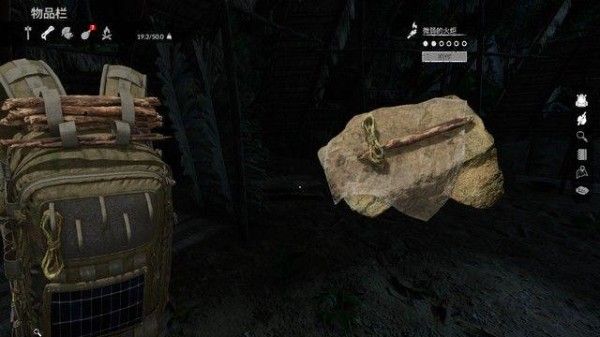 手上的短刀战斗效能太低,为了更好地应敌,你需要更长的武器才行。和地上的长木棍互动,将其制作成简易长矛,注意,不要选择采集,不然长木棍会变成普通木棍。