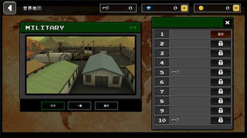 选择好地区后,每一个地区又有十个关卡,而且我们还可以选择关卡难度,分别为简单、一般、困难,小编建议新手还是选择简单来练练手。