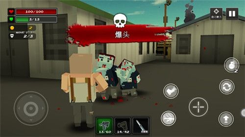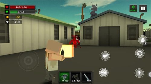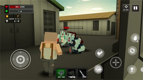 进入游戏后,会出现在城镇中,僵尸也会不断出现,按住屏幕左下角的摇杆来控制走位,右下角则有攻击按钮、跳跃按钮、换弹夹、丢炸弹等按钮。