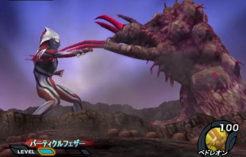 如果被异生兽击败,变回人间体,则需要靠近怪兽,按◎反弹异生兽的招,并按“方块”攻击异生兽的弱点(红色圈标注的地方),随后即可变身并再次战斗。