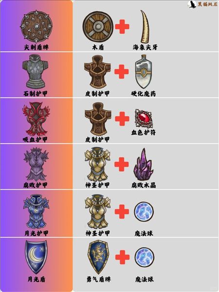 部分合成与其他合成不同,被合成的材料会参与合成,但进行合成时只有其中一端的物品会发生变化。这看起来像“基底”被“材料"进行了加工。