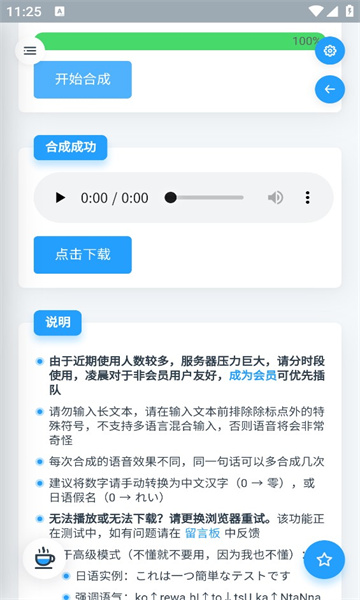 1、用户在这里进行自己需要的生成,随时都能产生一段非常动听的声音。
