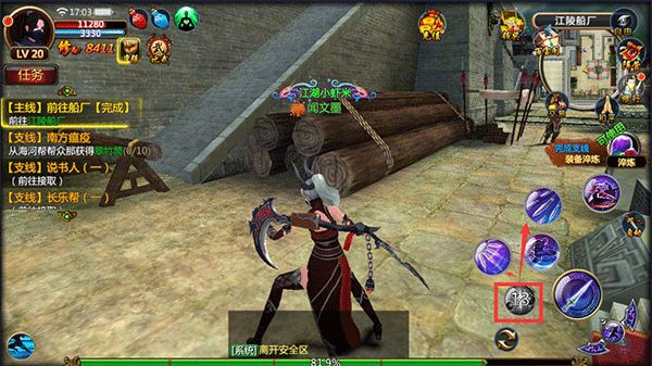 在遇敌时可以点击右侧普通攻击键进行普通攻击并且可以释放技能对敌人造成大量伤害,但使用技能会消耗相应的内力值(蓝)并且会有CD(技能冷却)时间,不同的职业角色的攻击模式和技能效果各有千秋,老铁们可以根据战况选择技能释放的时机。