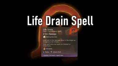 《博德之门3》生命吸取法术MOD,添加了一个新的 1 级死灵法术:生命吸取。该法术是一种近战法术攻击检定,可造成 2d10 坏死伤害,每增加一个法术位等级 +1d10,造成的伤害的一半作为临时生命值获得。最高可施放至法术位等级 9。感兴趣的小伙伴快来下载吧!