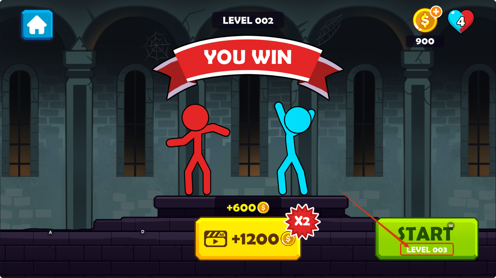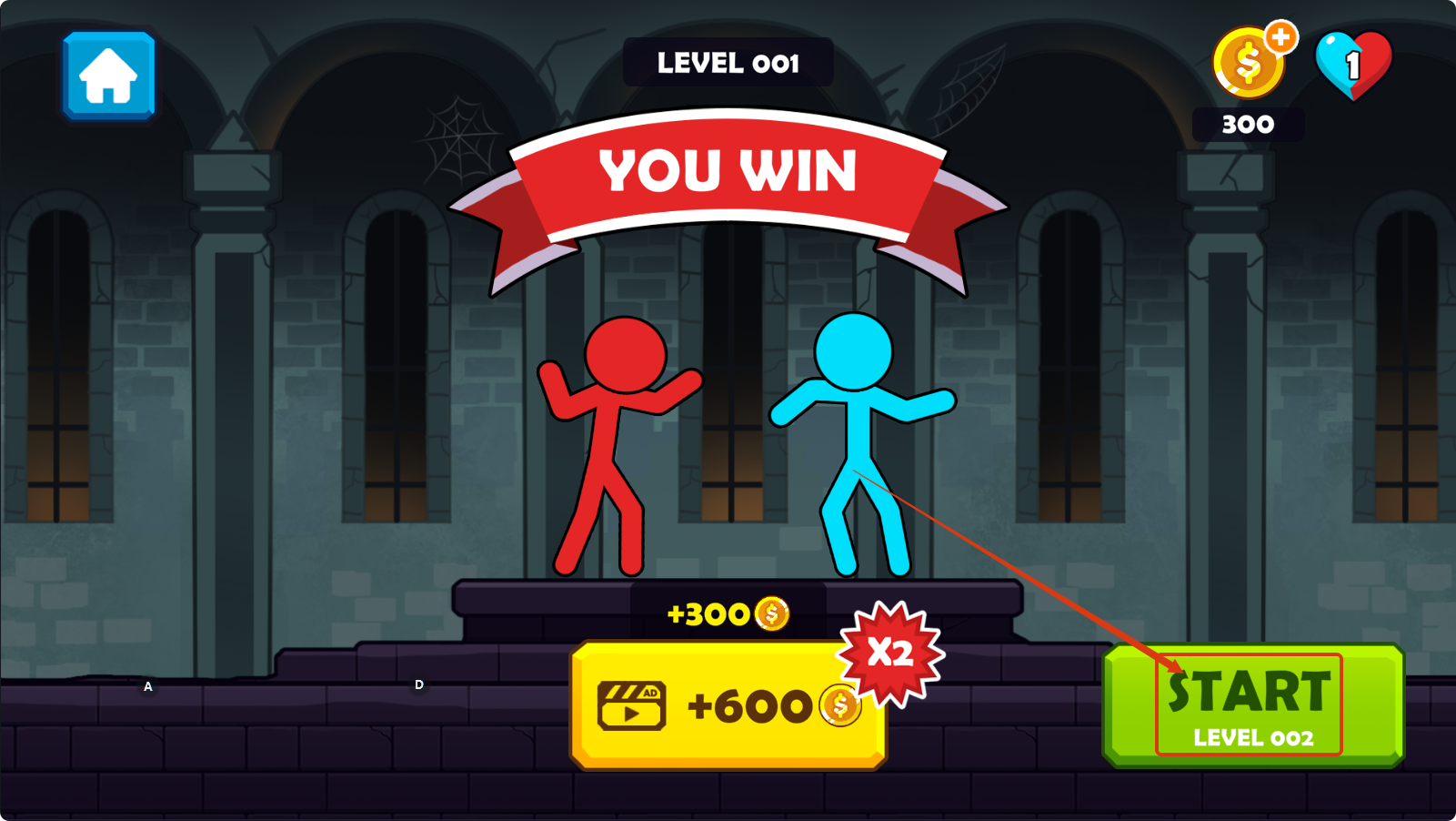 1、完成LEVEL-001后,点击【START-LEVEL-002】按钮,开启下一关冒险,获取奖励后继续征程。