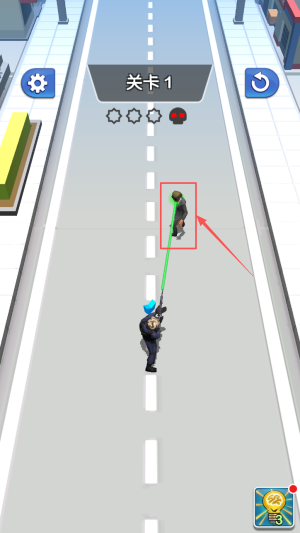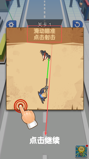 1、拖屏幕定射轨:进入关卡后,拖拽屏幕移动射轨,瞄准通缉名单上的敌人,调整角度确保一枪击中关键目标。