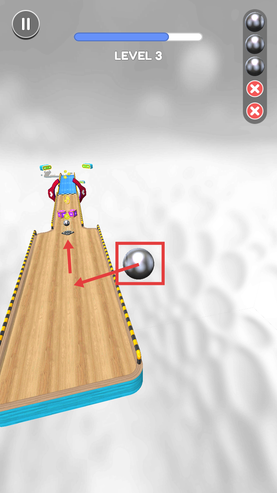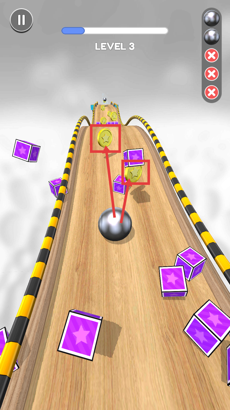 3、沿路径控制金属球移动,注意保持平衡,朝着【LEVEL3】关卡目标持续推进。