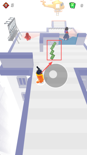 1、开启闯关准备:进入游戏明确 “躲避敌人、登上直升机” 目标,熟悉橡皮人移动与枪械操作方式,了解当前关卡敌人分布。