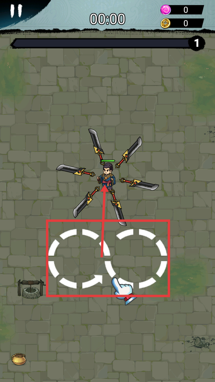1、进入游戏后按照提示滑动操作,控制角色移动,利用多刀攻击开启战斗,快速熟悉基础操作。