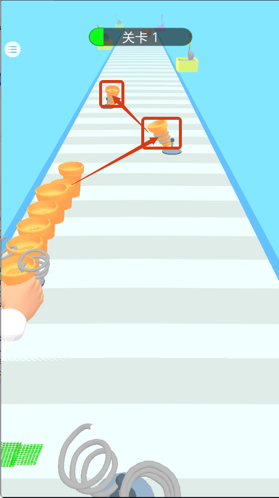 2、在关卡1中,收集【橙色-弹簧组件】,不断积累提升道具等级,助力后续关卡推进。