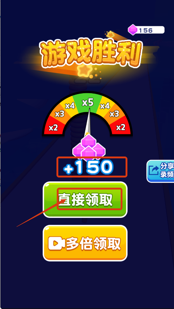 4、通关后点击【直接领取】可获得【+150-钻石】奖励,也可选择多倍领取来获取更多资源,积累钻石用于解锁功能或道具。
