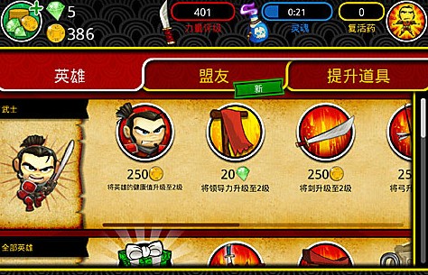 大钟效果为能使范围内的怪物眩晕,重甲武士能用就用,不能用的话,使用忍者来回走位,最不济都得用武士。拖延时间等技能冷却时间结束后发动范围攻击,金币的话可以在挑战模式里刷,只不过要看运气,因为不慎的话拿不了多少金币。