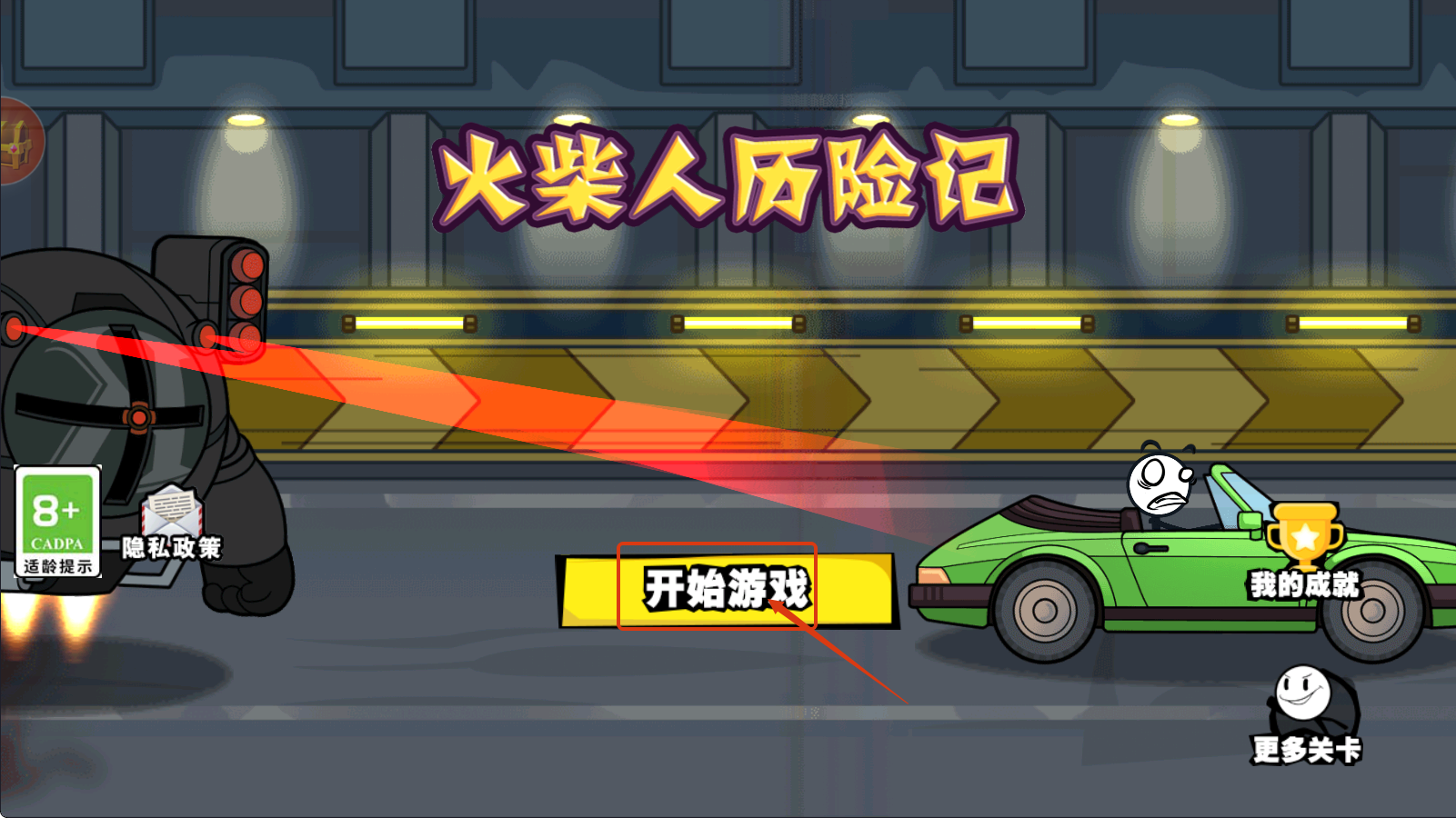 1、点击【开始游戏】进入《火柴人历险记》,开启冒险,留意场景互动元素,为后续挑战铺垫。