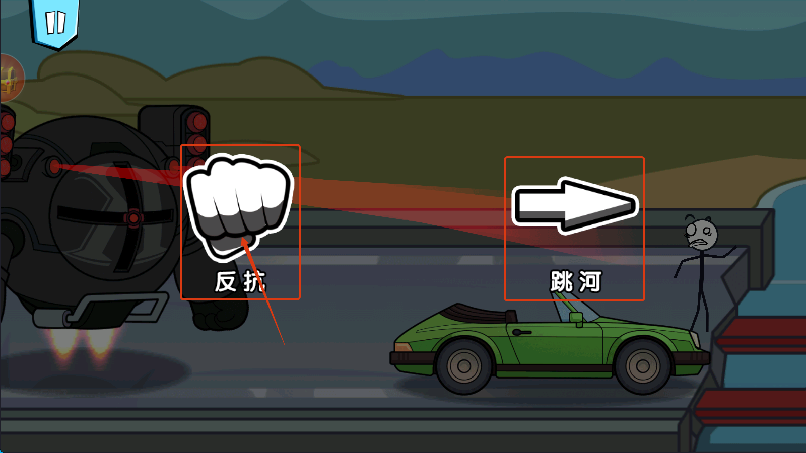 2、面对追击,在【反抗】与【跳河】中选策略,如【反抗】可正面应对敌人,推进剧情。