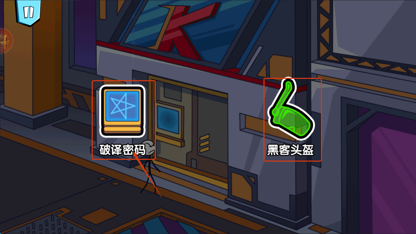 3、选择【破译密码】或【黑客头盔】,利用道具或行动解锁新区域,提升冒险进度。