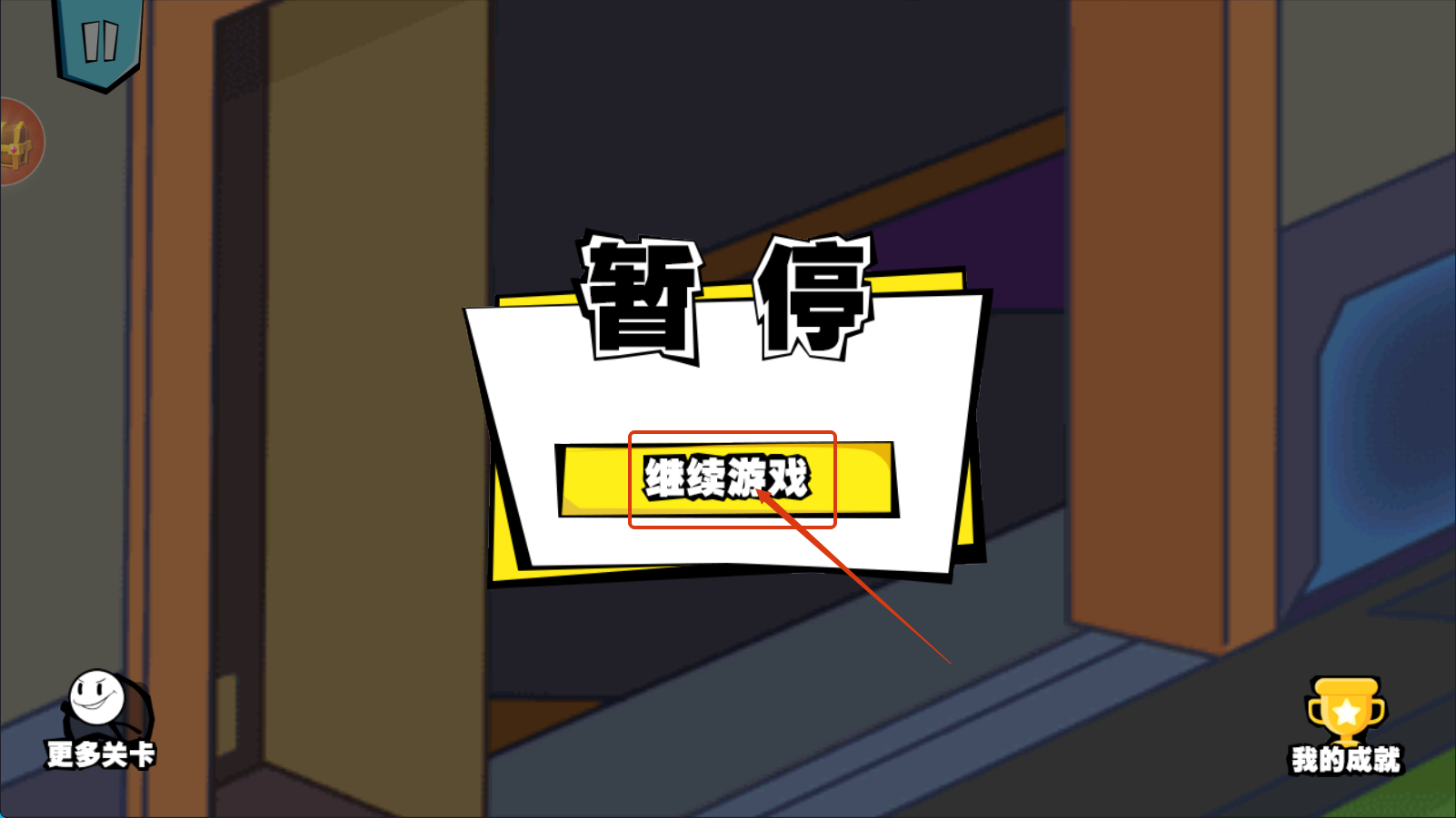 4、暂停后点击【继续游戏】,继续火柴人冒险,积累经验解锁更多关卡与成就。