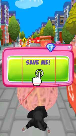 3、然后,当遇到障碍时,根据提示滑动屏幕来控制小狗移动。