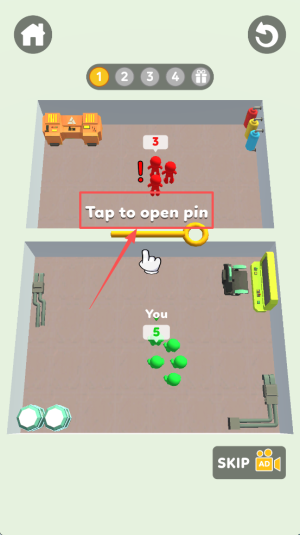 1、首先,点击屏幕上的“Tap to open pin”按钮来打开锁住敌人的锁。