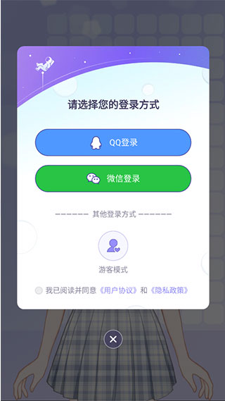 打开我的次元游戏,选择登录方式,支持QQ、微信和游客登录