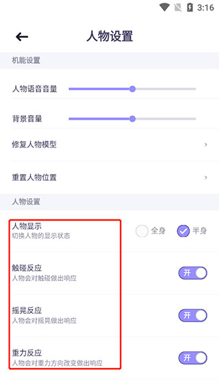 如果对人物形象不满意,可以依次点击“我的”-“人物设置”,进行人物调整:任务显示、触碰反应、摇晃反应等等。