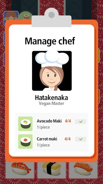 2、 多样化的寿司制作:寿司大亨中文版游戏中拥有丰富的寿司种类和口味调配,玩家可以根据顾客的喜好制作不同的寿司,增加销售额和顾客满意度。