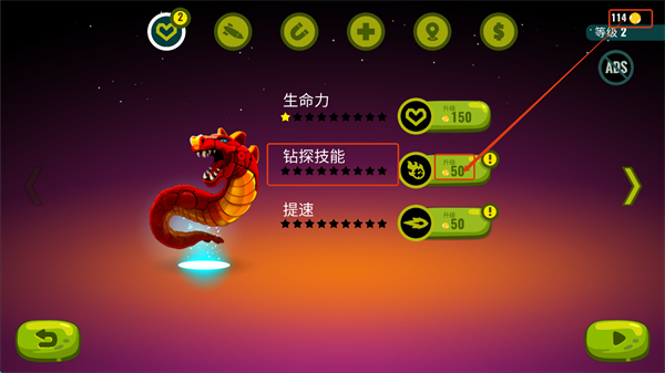 4、利用收集的金币,升级【钻探技能-50】,提升角色能力,助力后续冒险。