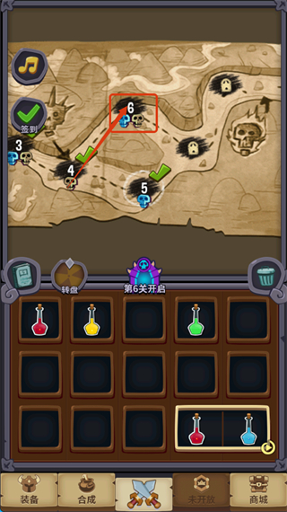 4、解锁第6关,查看地图关卡标识,规划冒险路线,开启新关卡挑战。
