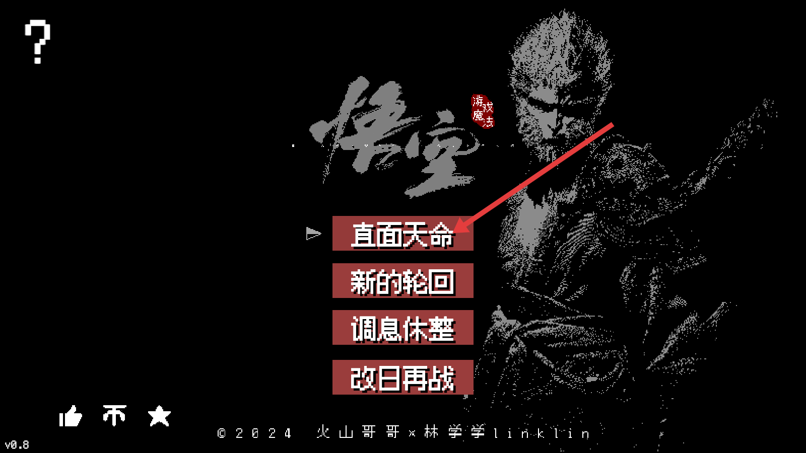 1、进入游戏界面后,点击【直面天命】选项,正式开启游戏冒险,踏上悟空的战斗征程。
