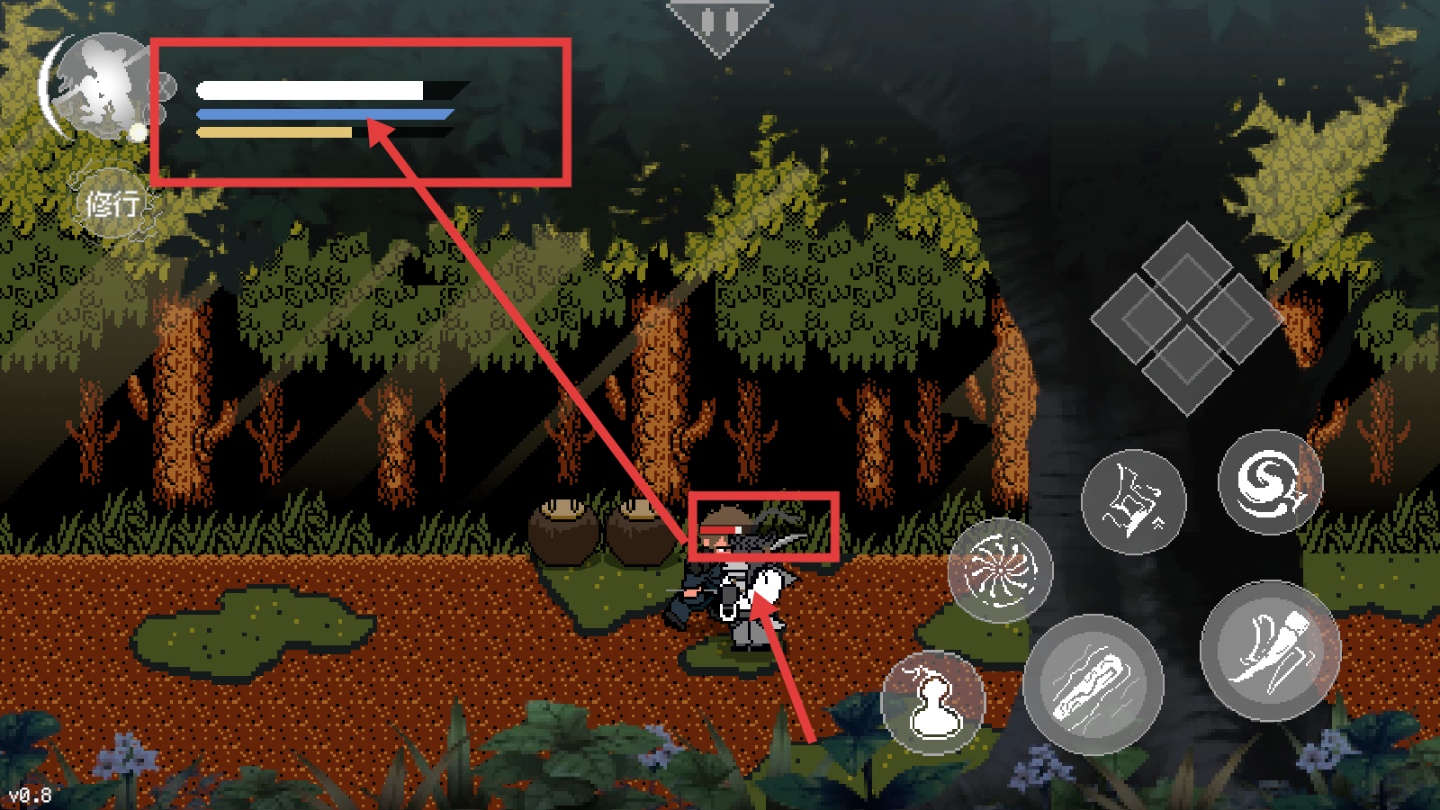 3、战斗时留意左上角的血量条,关注自身状态,根据血量变化及时调整战斗策略,避免被敌人击败。