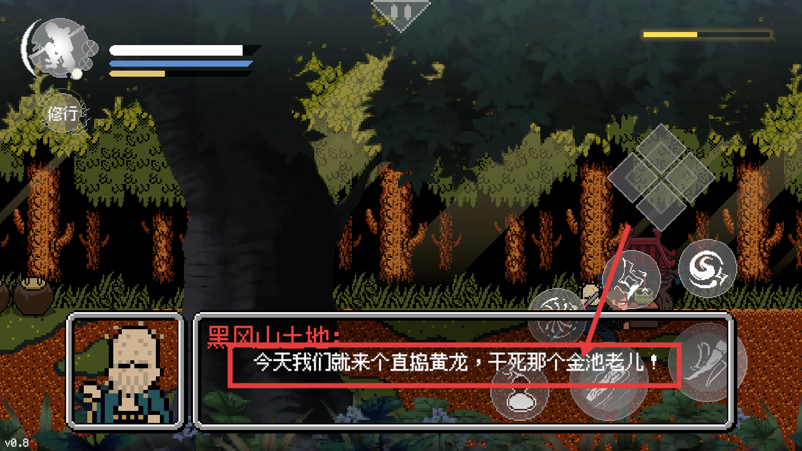 4、推进剧情时,关注黑风山土地的对话,了解任务目标“直捣黄龙,干死金池老儿”,按剧情指引开展后续行动。