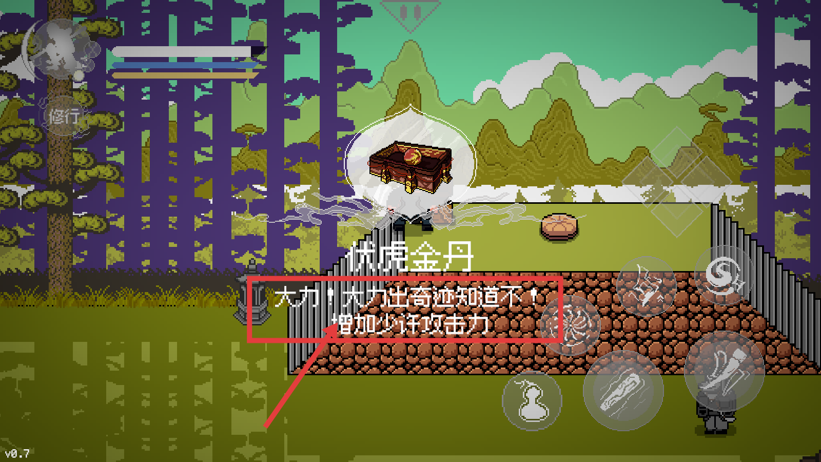 3、获得【伏虎金丹】,使用后增加少许攻击力,提升角色战斗能力。