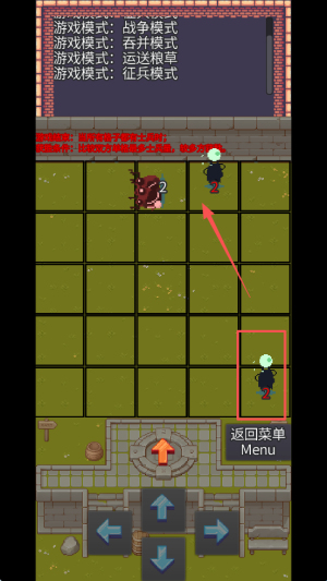 3、然后,在游戏界面使用虚拟方向键控制角色移动和执行命令。