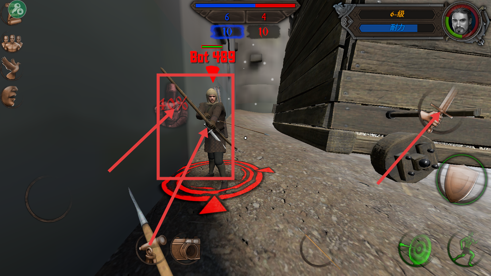 2、战斗中利用左侧指令(进攻!杀、恐吓、欢呼等)进行互动,同时操控角色移动,展开战斗。