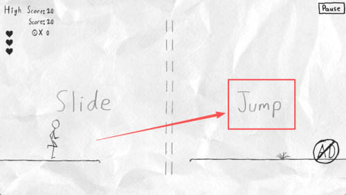 3、然后,当遇到障碍时,点击“Jump”按钮使角色跳跃。